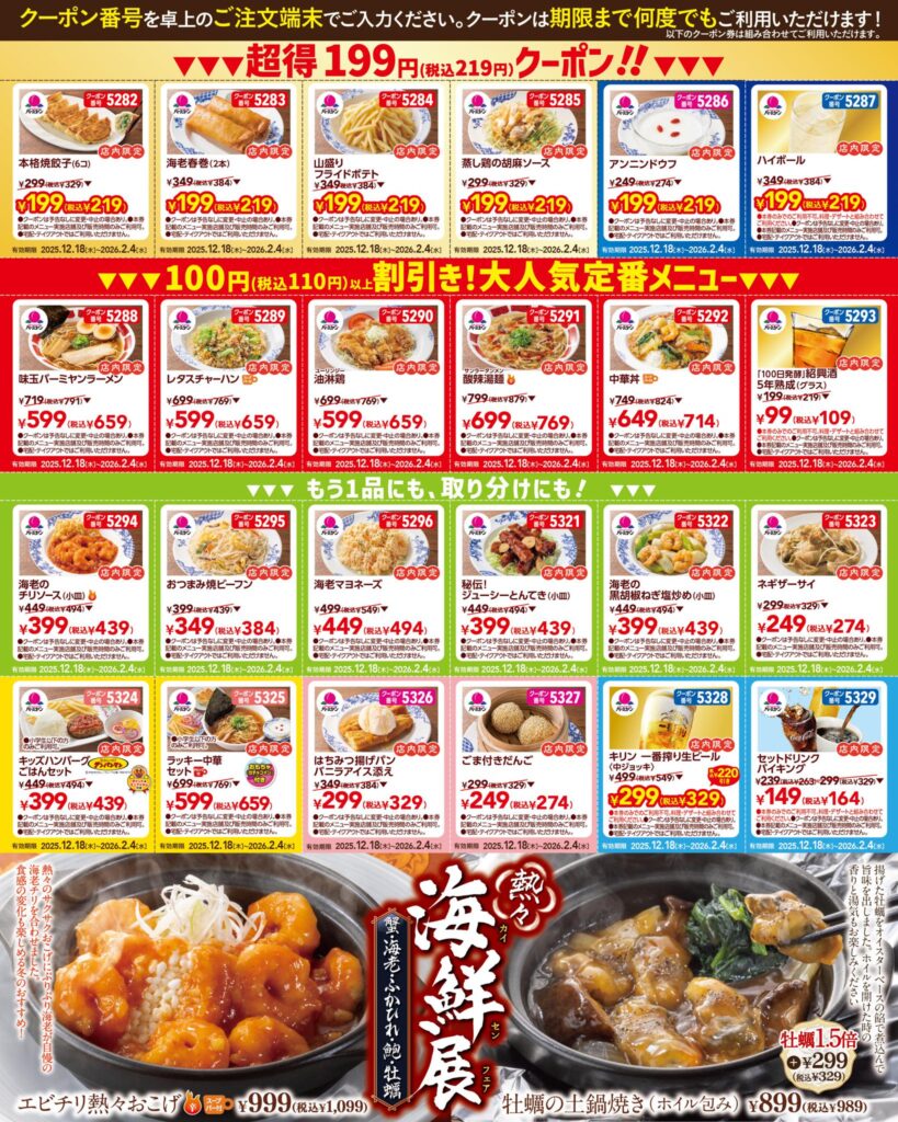 | 4325 | 中華丼 | 879円 | 769円 | 2/19 |