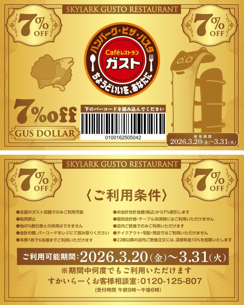 - 【参考】配布クーポン〜 7/2(ガストクーポン)