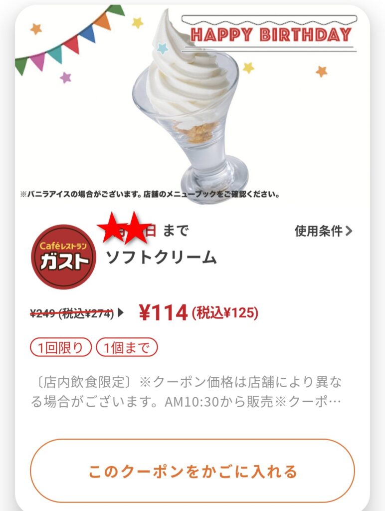 【回答】すかいらーくアプリにて、誕生日登録をしていただいている方へ配信されるクーポンです。