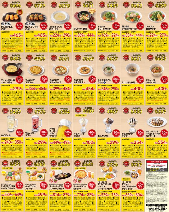 | 6545 | セットドリンクバー | 336円 | 140円 | 11/27 |