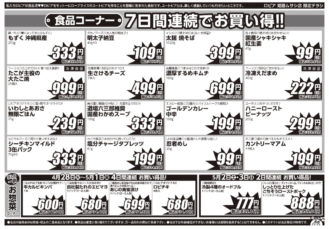 [4/28配布] ロピア姫路ムサシ店 チラシ