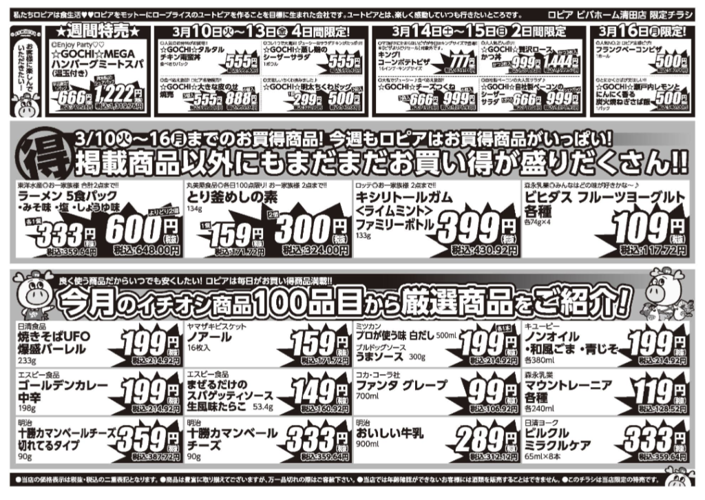 早速、ロピアビバホーム清田店のチラシを紹介!