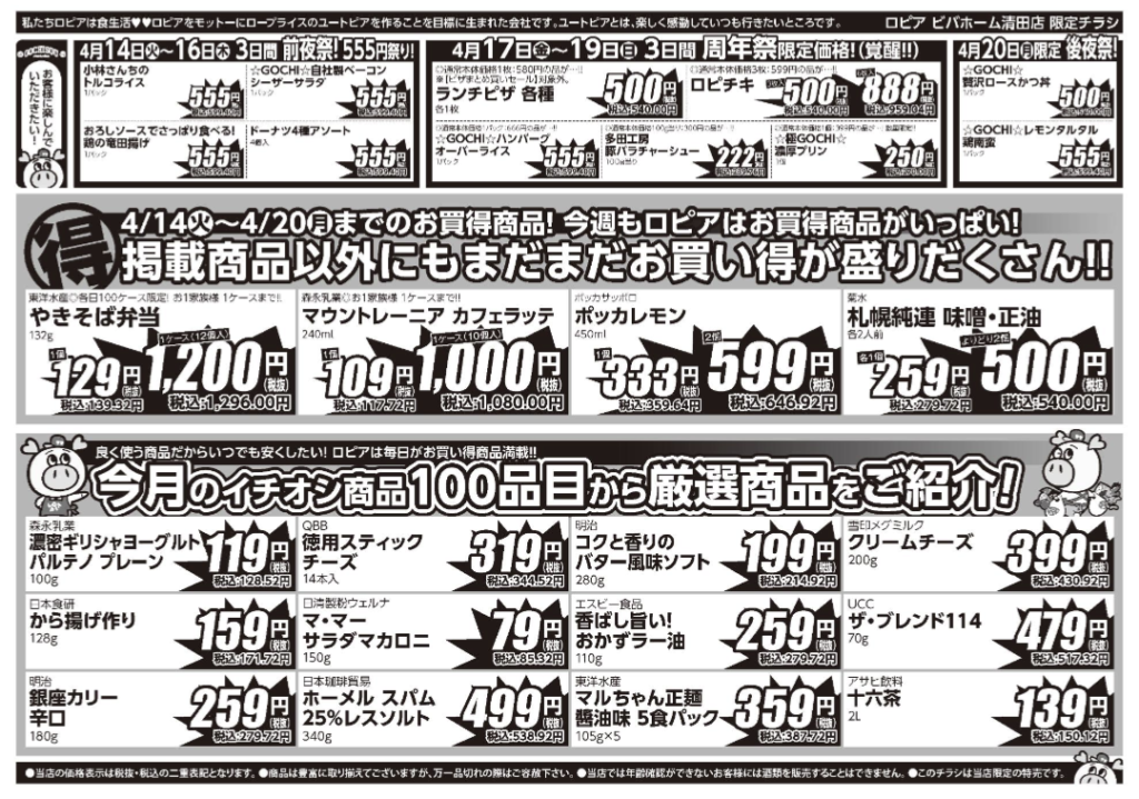 [4/14配布] ロピア ビバホーム清田店 チラシ